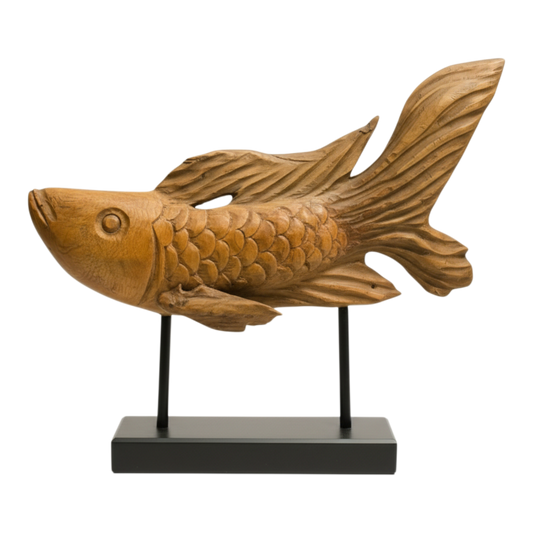 Dekofigur Holz Koi (natur-schwarz)