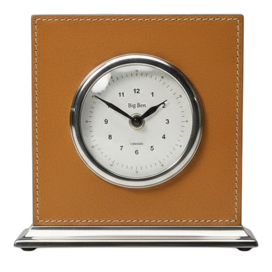 Tischuhr Kunstleder (cognac-silber)