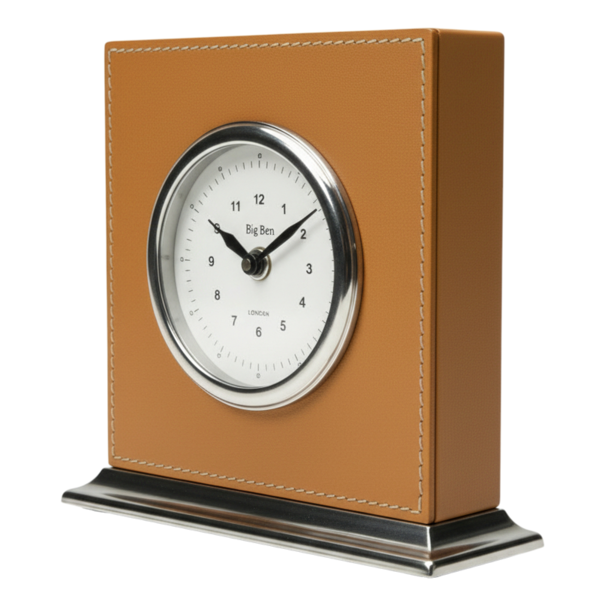 Zeitlose Eleganz für deinen Schreibtisch: Diese Tischuhr verbindet weiches Kunstleder in warmem Cognac mit glänzenden Nickel-Akzenten zu einem modernen Klassiker. Das hochwertige Material fühlt sich angenehm an und passt mühelos zu deiner bestehenden Einrichtung. Mit klarem Zifferblatt und präzisem Uhrwerk behältst du nicht nur die Zeit im Blick – du setzt auch ein stilvolles Statement. Perfekt für Büro, Nachttisch oder Wohnzimmer.