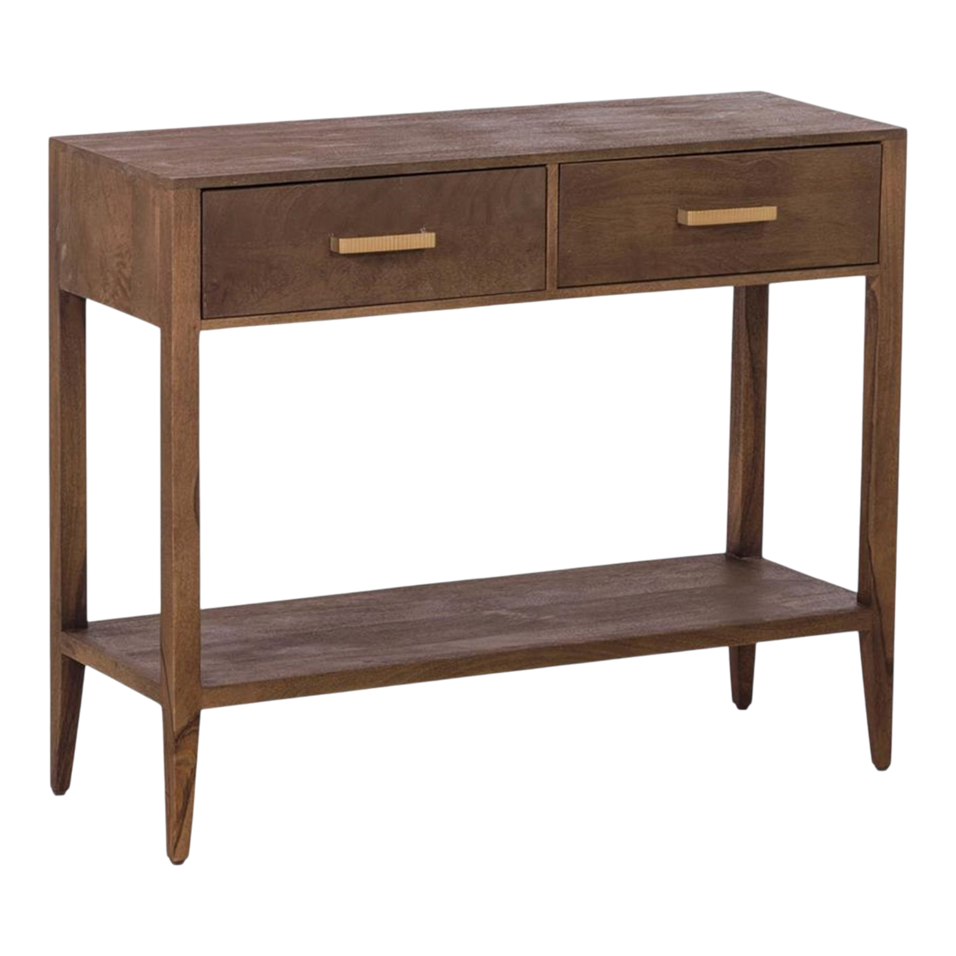 Diese Konsole 'Boston' ist ein stilvolles und zugleich funktionales Möbelstück aus Mangoholz im elegant-luxuriösen Look. Das Produkt wird fertig montiert geliefert.